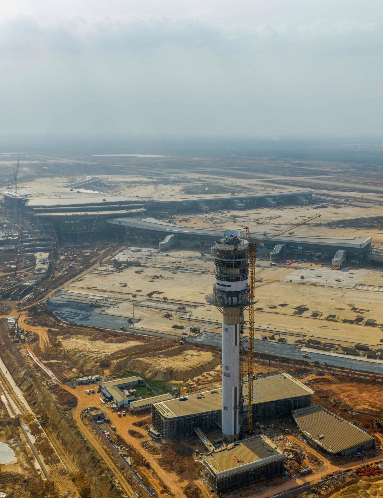 Tháp điều hành cao 123 m gắn radar trên đỉnh, diện tích xây dựng khoảng 80 m2, đường kính thân tháp 10 m.