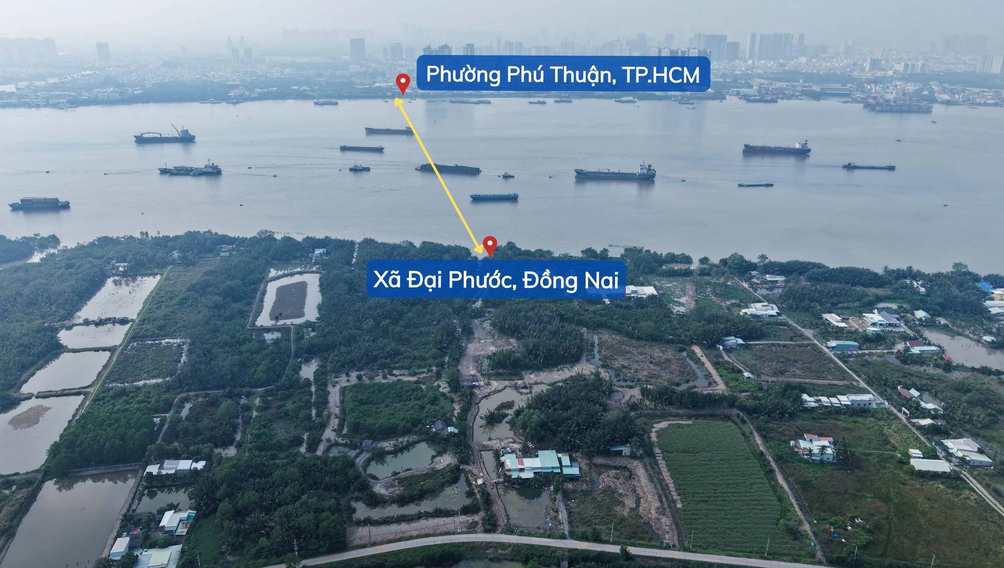 Flycam toàn cảnh khu vực xây cầu Phú Mỹ 2 kết nối TP.HCM và Đồng Nai