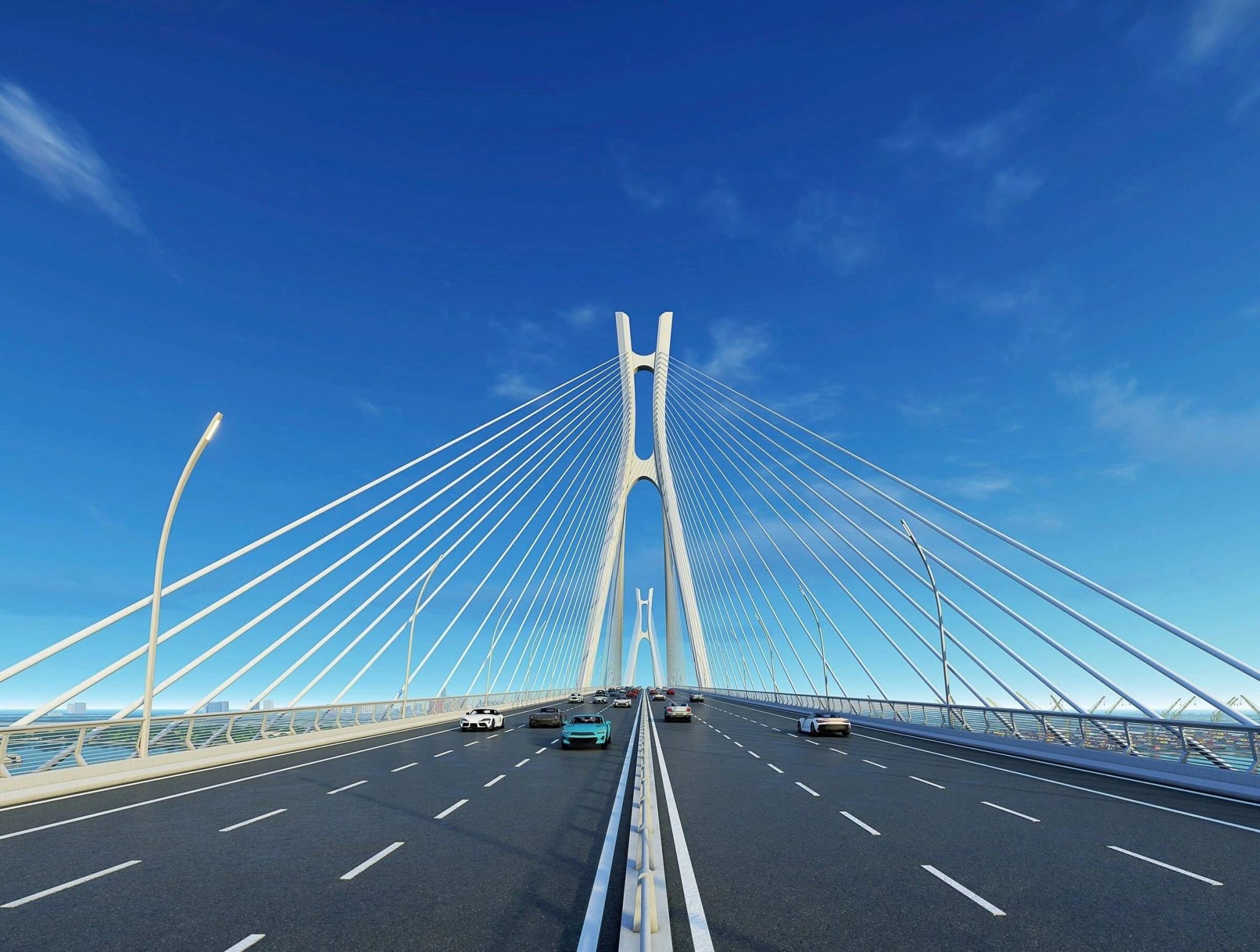 Phối cảnh đô thị và cầu Cát Lái cùng các nút giao hai bên cầu trong tương lai.