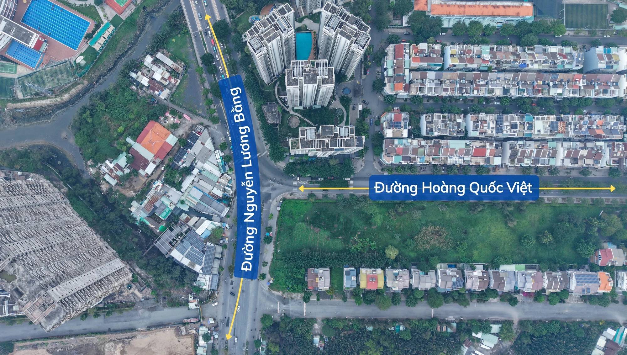 Nút giao đường Nguyễn Lương Bằng – Hoàng Quốc Việt, khu vực dự kiến đường cầu Phú Mỹ 2 đi qua.