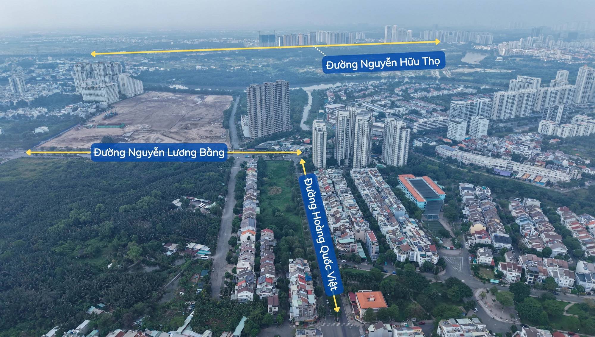 Hiện vẫn chưa có đường hiện hữu để kết nối đường Nguyễn Hữu Thọ với đường Hoàng Quốc Việt, toàn vực đường kết nối trong tương lai đi qua chủ yếu là đất trống, kênh rạch và một phần nhà dân.