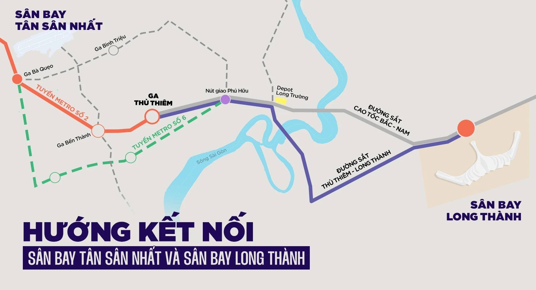 Đồng thời, làm các thủ tục báo cáo HĐND hai địa phương thống nhất giao UBND TP.HCM là cơ quan thẩm quyền và xem xét giao nhà đầu tư (Tập đoàn Trường Hải) nghiên cứu triển khai tuyến đường sắt Bến Thành – Thủ Thiêm và Thủ Thiêm – Long Thành theo hình thức đối tác công tư PPP. Dự kiến sẽ hoàn thành trong năm 2030.