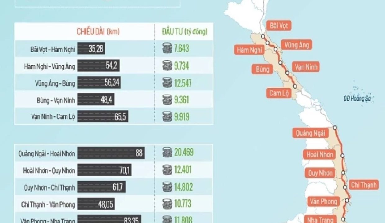 6 dự án cao tốc Bắc Nam gồm Quảng Ngãi – Hoài Nhơn, Hoài Nhơn – Quy Nhơn, Quy Nhơn – Chí Thạnh, Chí Thạnh.
