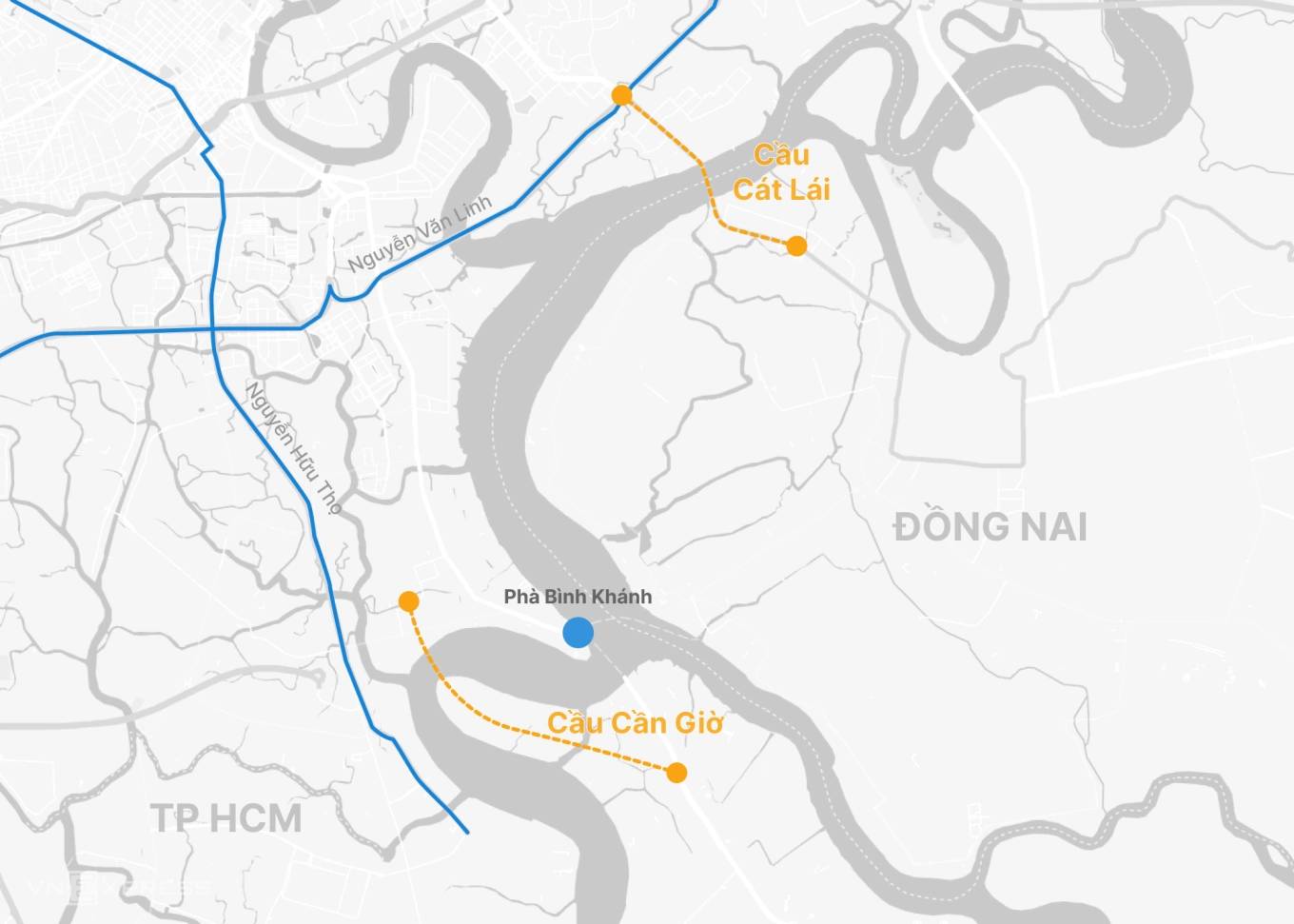 Ở phía đông, kế hoạch xây cầu Cát Lái từ lâu được xem là lời giải cho tình trạng quá tải tại bến phà nối TP HCM với Nhơn Trạch (Đồng Nai). Mỗi ngày, hàng chục nghìn lượt xe phải chờ phà hoặc chạy vòng theo quốc lộ 51 và cao tốc Long Thành – Dầu Giây.