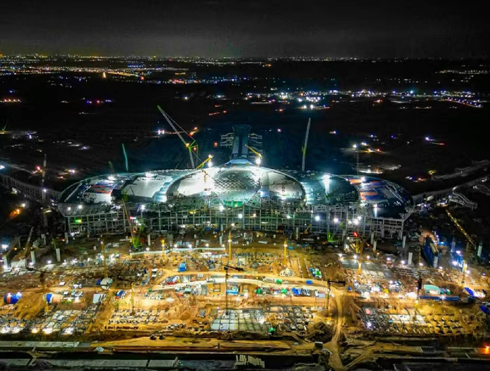 công trường sân bay quốc tế Long Thành (Đồng Nai) sáng rực ánh đèn, tiếng máy móc rộn ràng khắp khu vực.