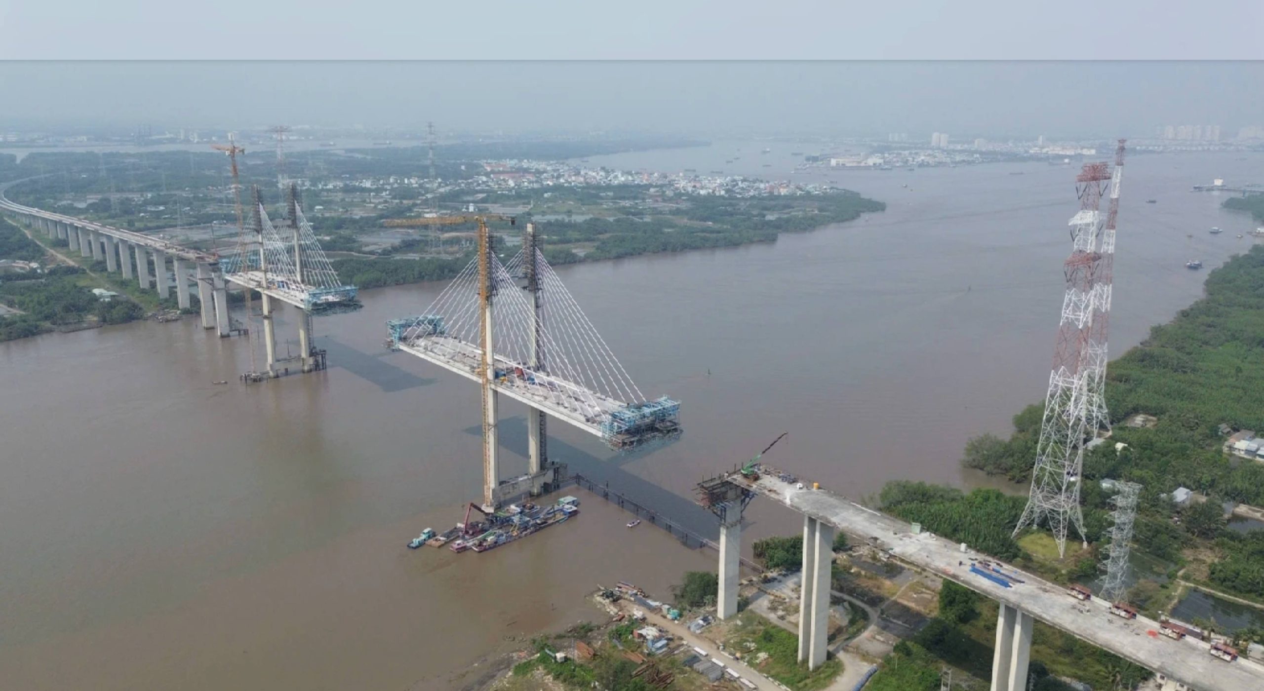 “Hiện nay dự án đã đạt hơn 95%, huy động tối đa hơn 300 công nhân, kỹ sư để làm việc liên tục theo nhiều ca, nhiều kíp để đảm bảo tiến độ. Hiện các mũi đang thi công ở hai trụ phần dầm chính dây văng. Dự kiến, hợp long vào tháng 5-2026 và thông xe vào quý III-2026.