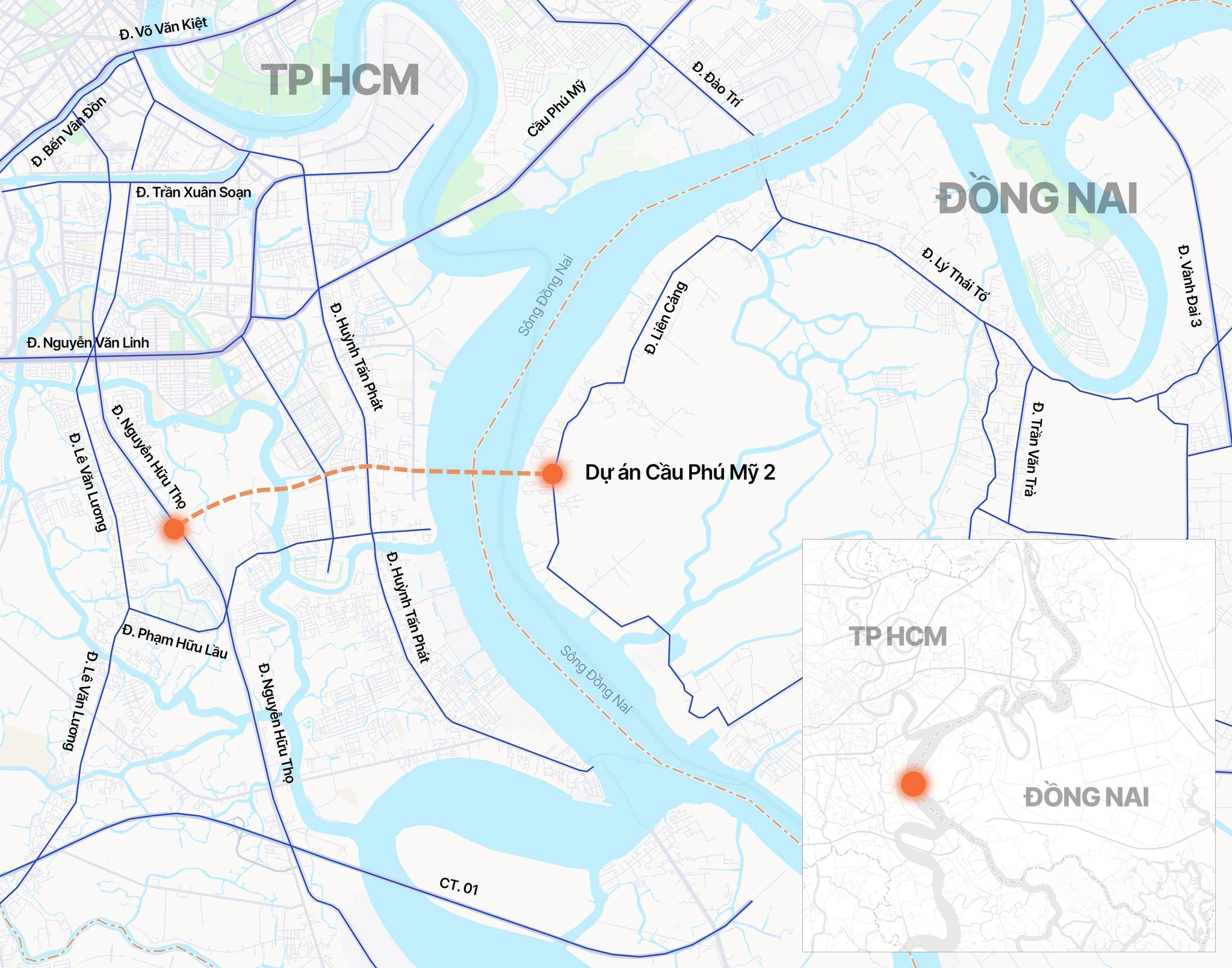 Tuyến có điểm đầu ở đường Nguyễn Hữu Thọ (TP HCM), điểm cuối nối vào đường Liên Cảng (Đồng Nai), tổng chiều dài 6,3 km. Trong đó, đoạn qua TP HCM dài khoảng 4,6 km, phần còn lại thuộc địa bàn Đồng Nai. Công trình cách cầu Phú Mỹ hiện hữu khoảng 2 km.