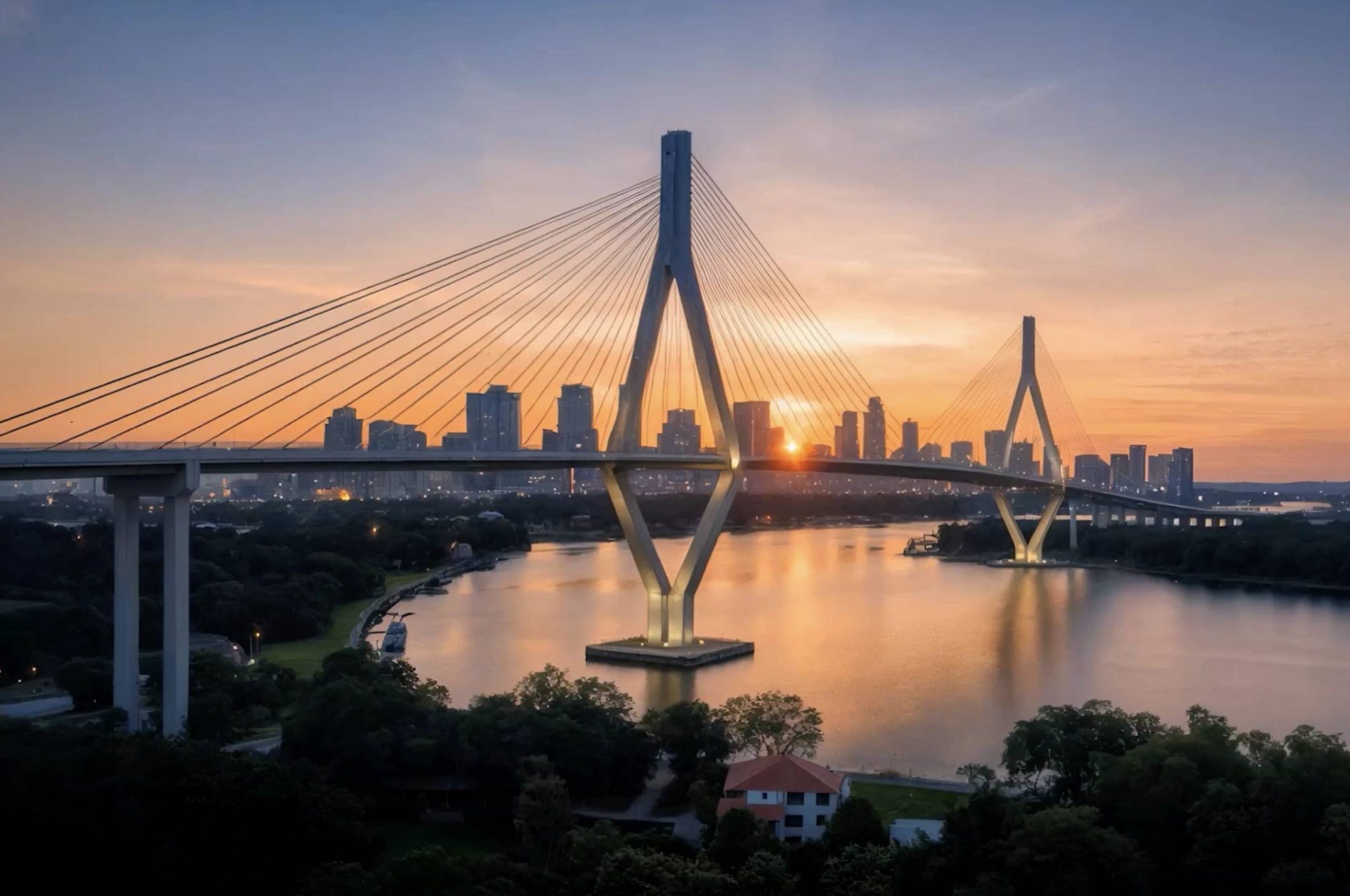 Cầu Phú Mỹ 2 dài 6,3 km, vượt sông Đồng Nai, thiết kế dây văng, đường dẫn hai tầng giúp hình thành trục giao thông tốc độ cao và giảm nhu cầu giải phóng mặt bằng.