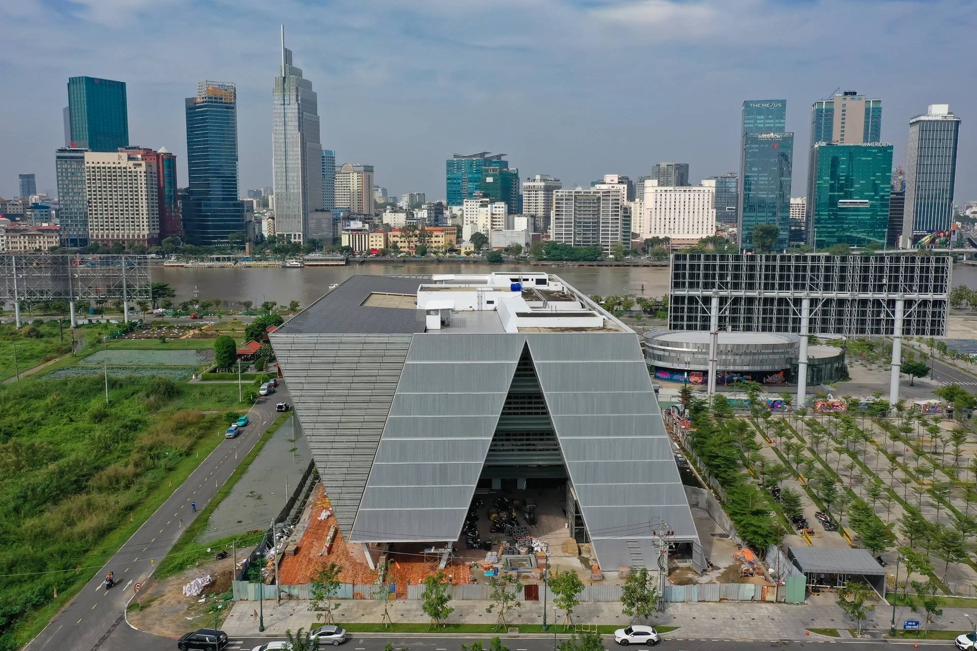 Điểm nhấn kiến trúc tại Thủ Thiêm là Trung tâm Triển lãm Quy hoạch TPHCM, với diện tích 18.000m2 và cao 5 tầng. Công trình này được thiết kế với hai hình khối nghiêng và khối thép tam giác ngược, hứa hẹn trở thành biểu tượng mới, là nơi trưng bày các đồ án kiến trúc, tổ chức sự kiện đô thị và giao lưu của giới chuyên môn, nhà đầu tư, du khách.