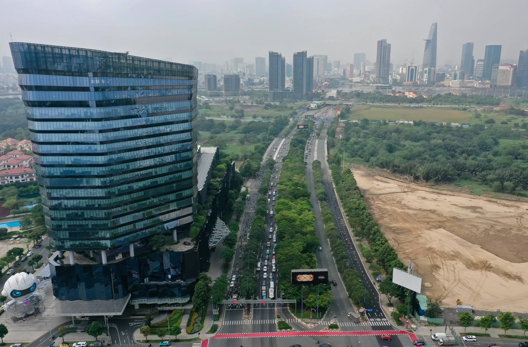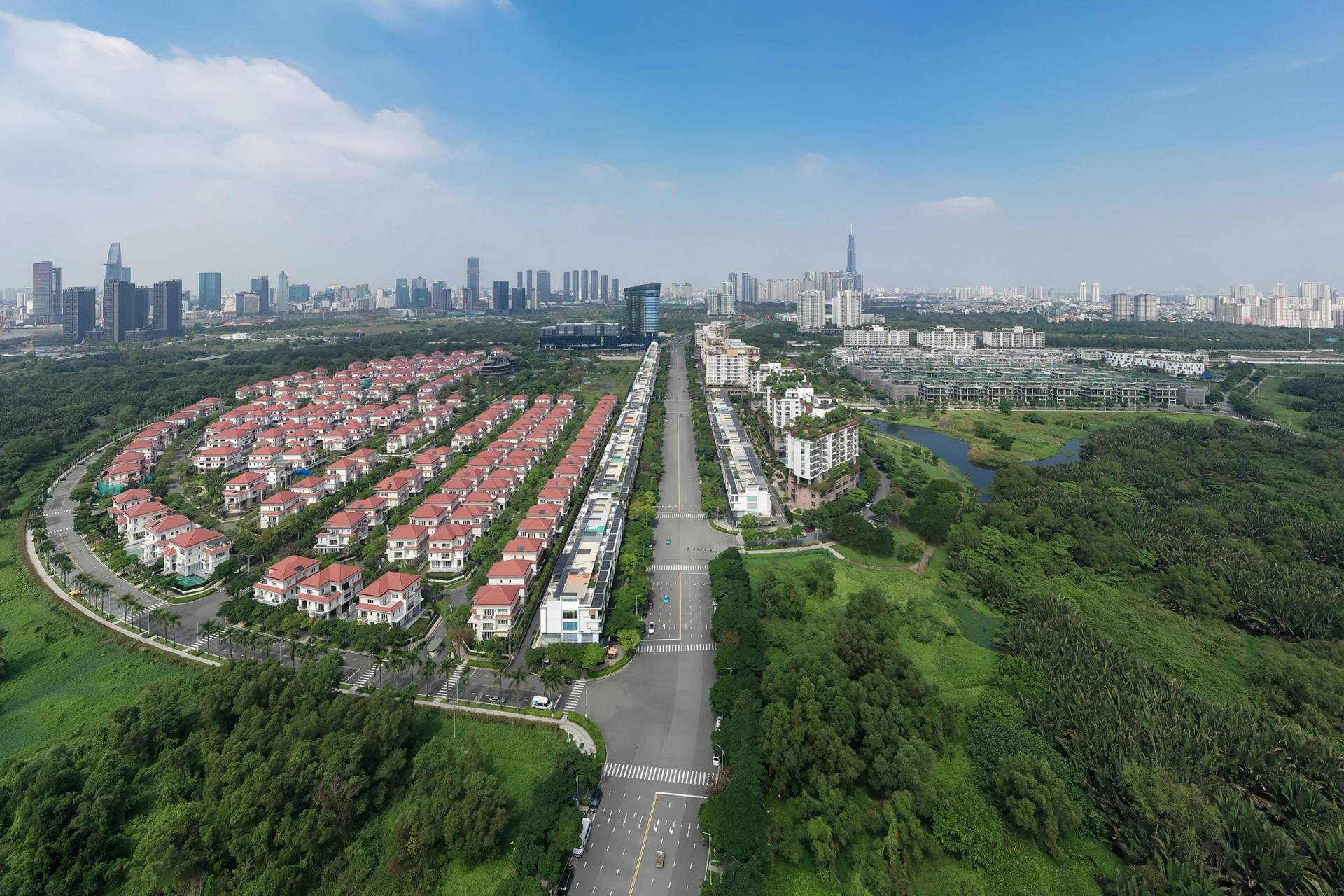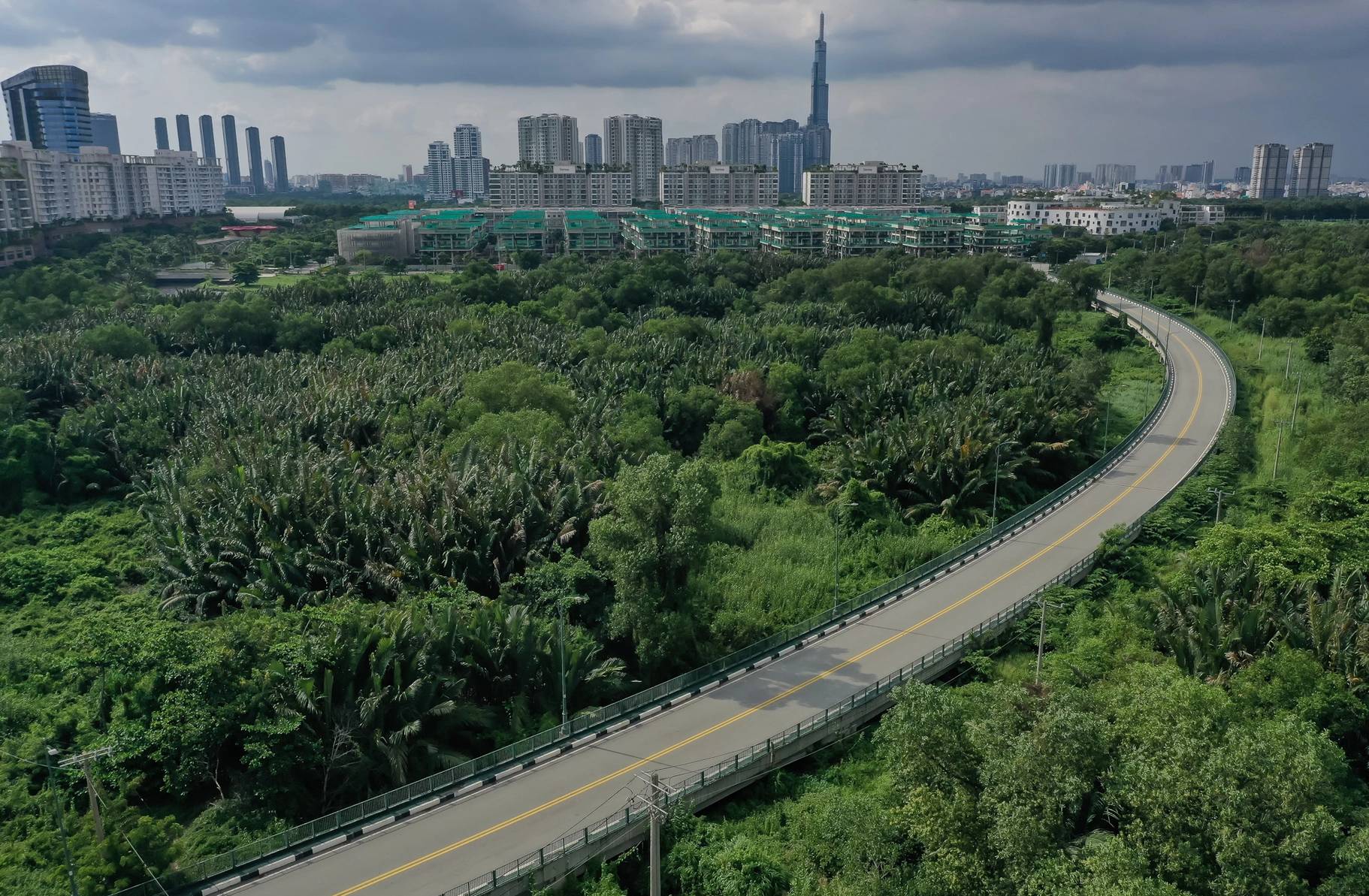 Bên cạnh các tuyến đường lớn, Thủ Thiêm còn có những tuyến đường vòng cung chạy dọc các khu đầm lầy, tạo nên không gian xanh mát và độc đáo.